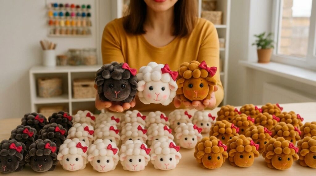 Creating sheep yarn pom-poms is a fun, tactile craft that can be used as ornaments, garlands, or table decor.