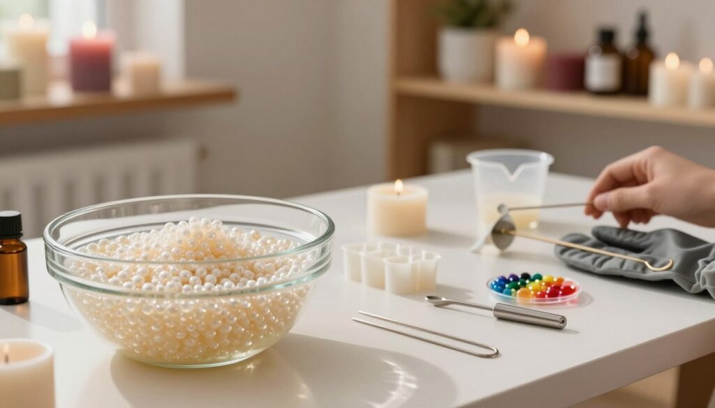 To make pearled candle wax at home, start with quality materials like Cargill NatureWax C-3 or American Soy Organics beads. You need to control the temperature well. This keeps the granules separate and looking good.