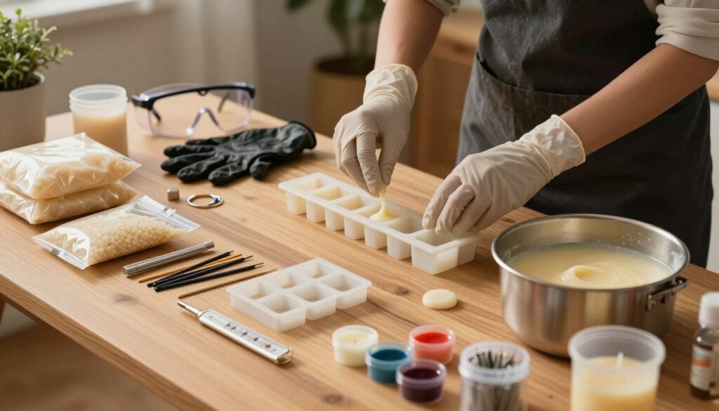 Learning candle making starts with the right materials and a safe work area. A clean space helps you focus on your craft. It ensures your candle wax tutorial results are top-notch.